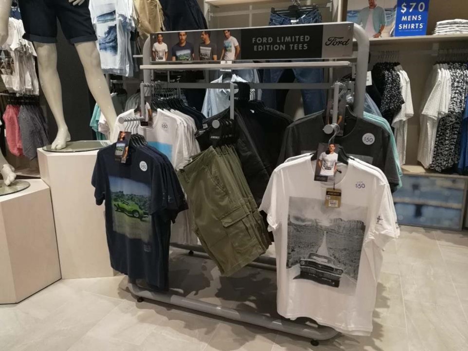 Worked with apparel retailer Jeans West to manage their initial foray back into licensed brands with a capsule collection of Ford T-shirts based on iconic Aussie Falcons and classic Mustangs. The ranges were supported through dedicated in store displays and front window displays nationally.